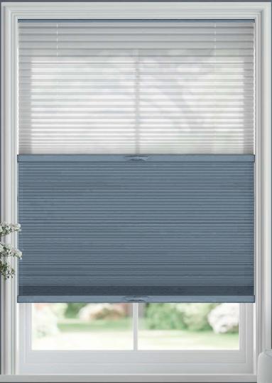 Day/night honeycomb blinds combine two fabrics - typically a light-filtering and a blackout material - in one blind for total versatility. You can enjoy soft, filtered light during the day and switch to full blockout coverage at night. Perfect for bedrooms, living areas, and home offices, day/night honeycomb blinds provide the benefits of two blinds in one sleek, space-saving design. The whole blind can also stack up at the top, out of the way.